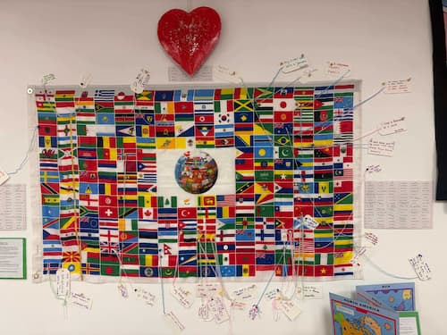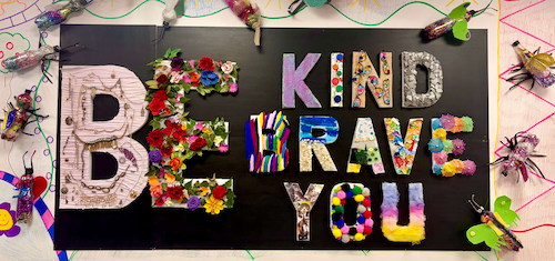 Our new exhibition Be Kind, Be Brave, Be You opened at the beginning of February, featuring powerful artworks created by young people from our Her Space Senior and Her Space Junior groups. The exhibition also includes a beautifully produced flag display (see last picture) highlighting the heritage connections that run through our diverse local community – celebrating the many stories, journeys and identities that shape East Oxford.