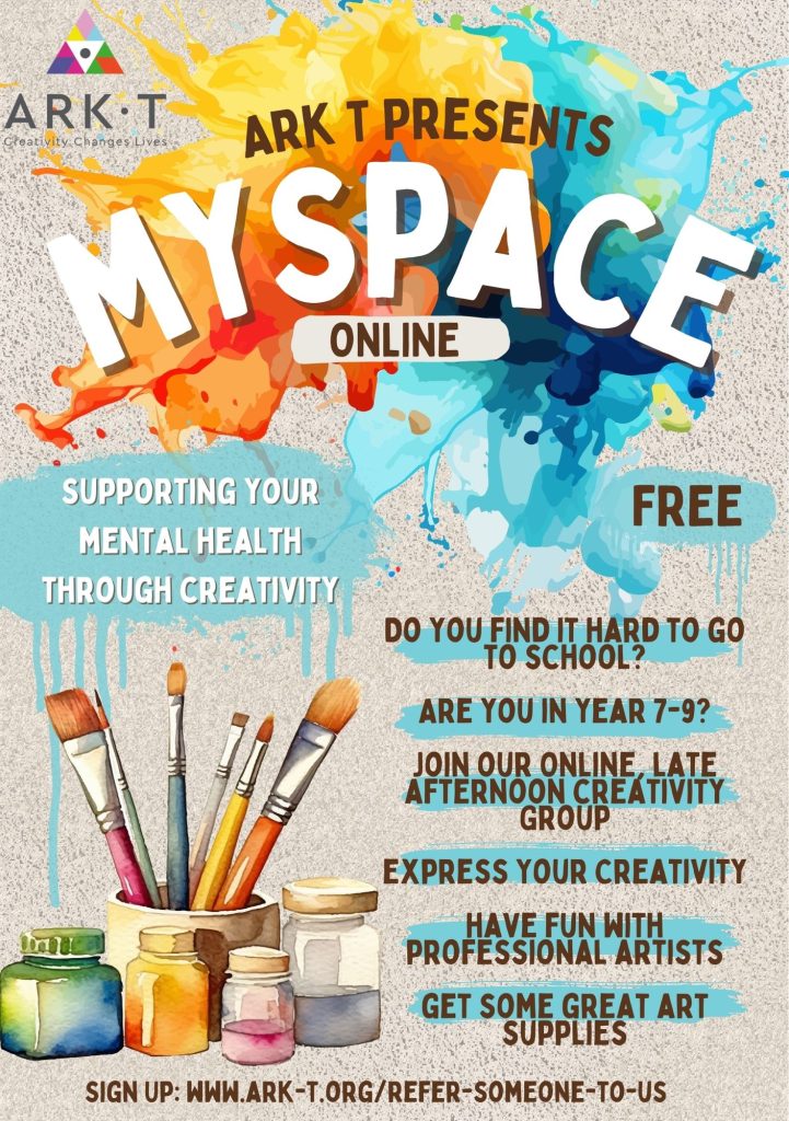 MySpace (Online) is a weekly creative wellbeing group for 10- to 14-year-olds who are struggling with school attendance due to emotional challenges.