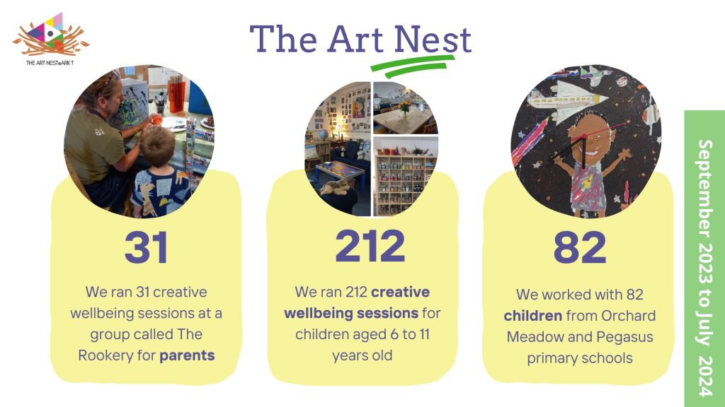 The Art Nest is a nurturing, therapeutic space within Orchard Meadow Primary School in Blackbird Leys. We work with children and young people aged 5 to 11, providing a supportive environment to foster growth and creativity.